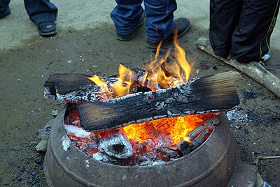 깡통에 구멍뚫어서 불 지피는건 봤어도 아궁이 전용 아이템인 솥에다가 불 지피는건 처음보눼 고구미(?) 한 무더기를 솥으로!!! emoticon_001
