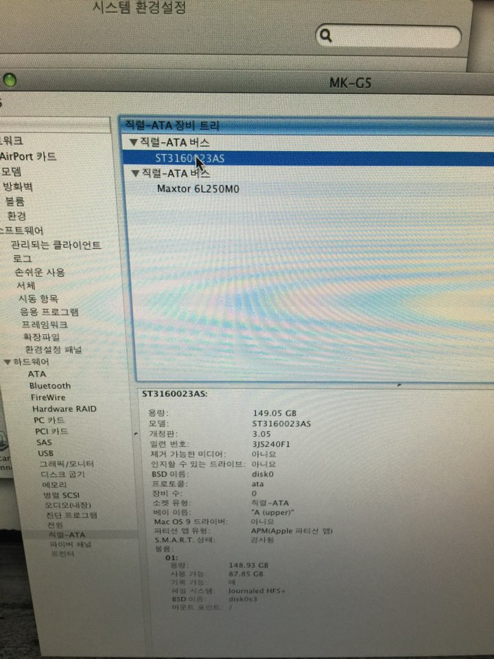 맥프로 G5 듀얼코어 1.8 램 3기가 하드디스크 2개 9만원입니다