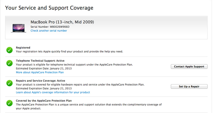 8. 애플 케어 유무 및 기간 : 2013년1월21일까지